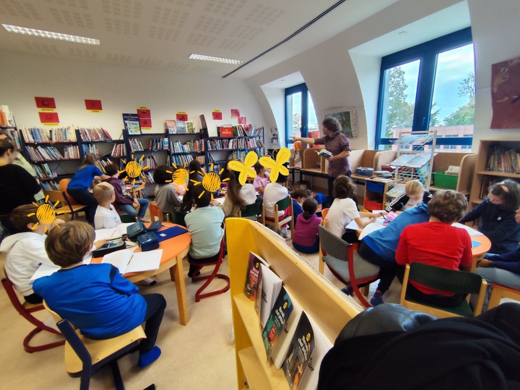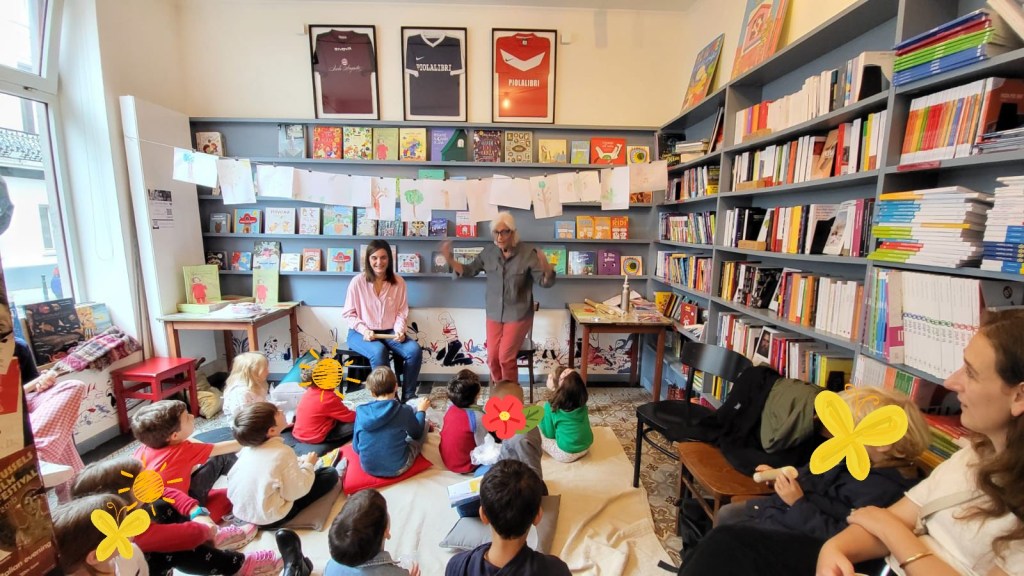 Alle 15 una ventina di bambini dai 6 anni in su ha incontrato la scrittrice Rebecca Rossi, giornalista e scrittrice bolognese, che ha scritto e pubblicato racconti brevi, e l’illustratrice Manuela Simoncelli, illustratrice di una decina di libri per l’infanzia tradotti in diverse lingue e premiata nel 2011 dal Premio Cento (FE) con il libro La bambina del treno e nel 2022 dal Premio letterario “Città di Cava de’ Tirreni” con La Traccia, nonché selezionata in diverse Biennali di Incisione contemporanea in Italia, Svizzera, Portogallo, Bulgaria e Olanda.
