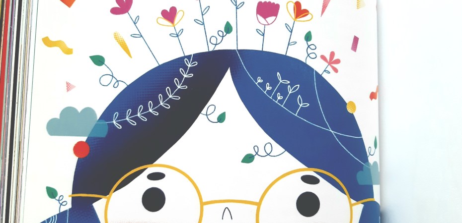 (illustrazione di copertina di Stefania Manzi della filastrocca Teste fiorite da Filastrocche in cielo e in terra, Gianni Rodari, Einaudi)
