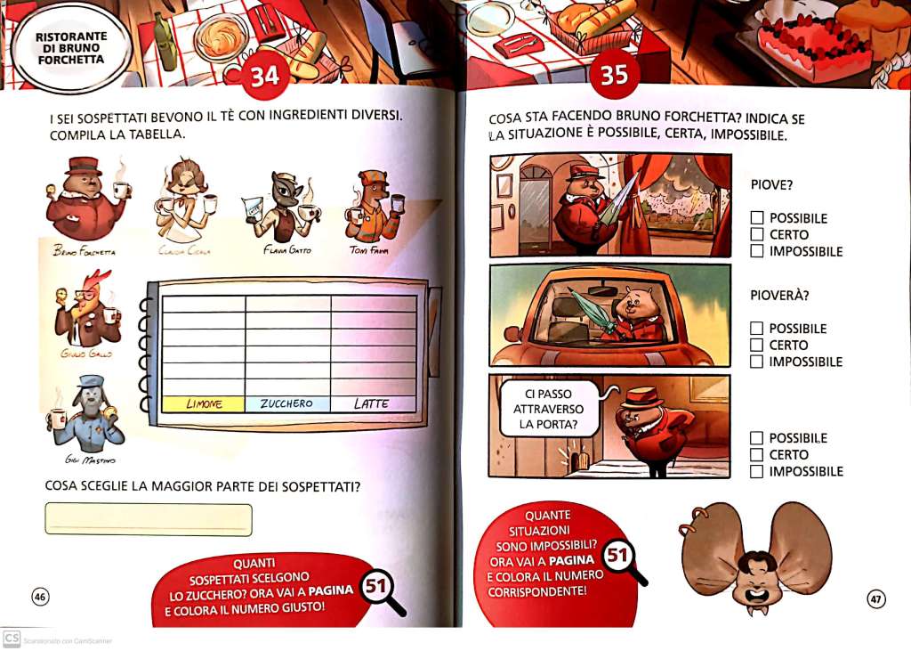 Vengono così coinvolti, grazie alla intrigante trama tipica del giallo, il pensiero divergente, la conoscenza e lo sviluppo linguistico per l’interpretazione dei problemi enigmistici e lo sviluppo dell’apprendimento e acquisizione linguistica dei fatti numerici anche esatti.
