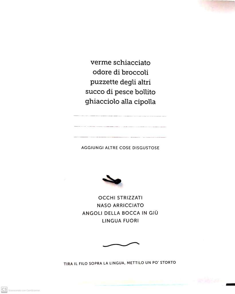 Il libro è molto simpatico e lo classificherei come libro gioco: c’è un filo elastico molto lungo che i bambini possono inserire in ognuna delle facce che rappresentano un’emozione e farne la bocca. Posizionandola nel modo opportuno, possono identificarsi e imitare l’emozione che traspare dall’illustrazione. Per ogni espressione emotiva vi sono suggerimenti verbali e stimoli a produrne altri secondo le sensazioni emotive dei bambini.