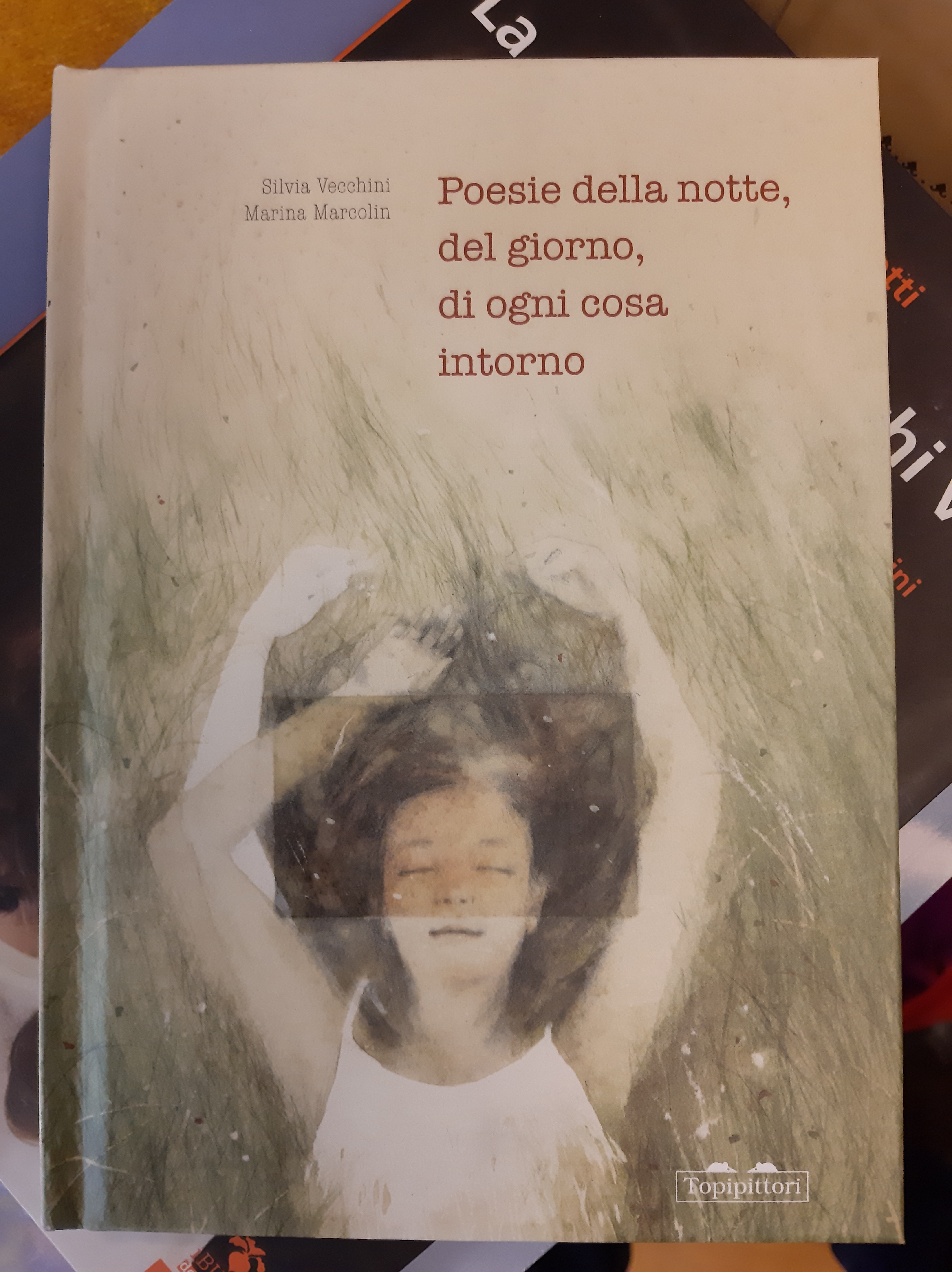 Per la rubrica In libreria a Bruxelles, vi presento un libro che ho trovato alla libreria Librebook di Bruxelles: Poesie della notte, del giorno, di ogni cosa intorno, scritto da Silvia Vecchini, illustrato da Marina Marcolin ed edito da Topipittori. Un libro di poesia … per bambini! Ebbene sì, perché la poesia può parlare anche ai più piccoli, se sceglie il giusto linguaggio e se parla di temi a loro vicini. Questo libro può essere un primo approccio alla Poesia (consigliato dai 7 anni) poiché è composto da testi privi delle classiche rime delle filastrocche, ma ricchi di suoni che rimano tra loro (rime interne, assonanze, ecc…), di metafore, di atmosfere sospese e magiche, ma anche di emozioni, paure, piccole gioie.