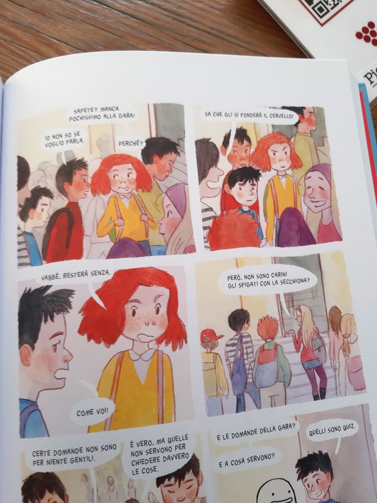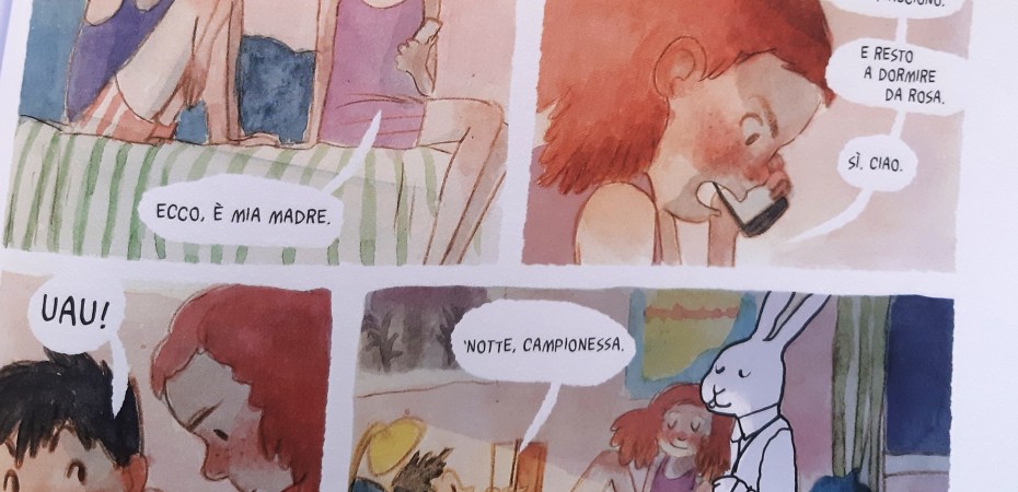 Consiglio inoltre questo fumetto – da un punto di vista expat – perché scritto da una bravissima autrice per ragazzi (premio Andersen 2018 come miglior scrittrice per bambini), dalla scrittura sempre curata e ricca, ma anche perché può essere una lettura invitante per i bambini che si scoraggiano davanti a una pagina tutta scritta. Il format del fumetto infatti permette di fare pause ammirando tavole e disegni e di leggere frasi brevi, scritte in stampato maiuscolo, senza però – in questo caso – che la storia perda profondità e poesia.