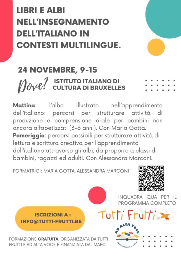 Infine siamo felicissime di potervi annunciare una formazione di 3 giorni a cui abbiamo lavorato tanto e che ci permetterà di condividere la nostra esperienza di questi anni e di confrontarci sul multilinguismo a Bruxelles. Trovate tutte le informazioni a questo link!